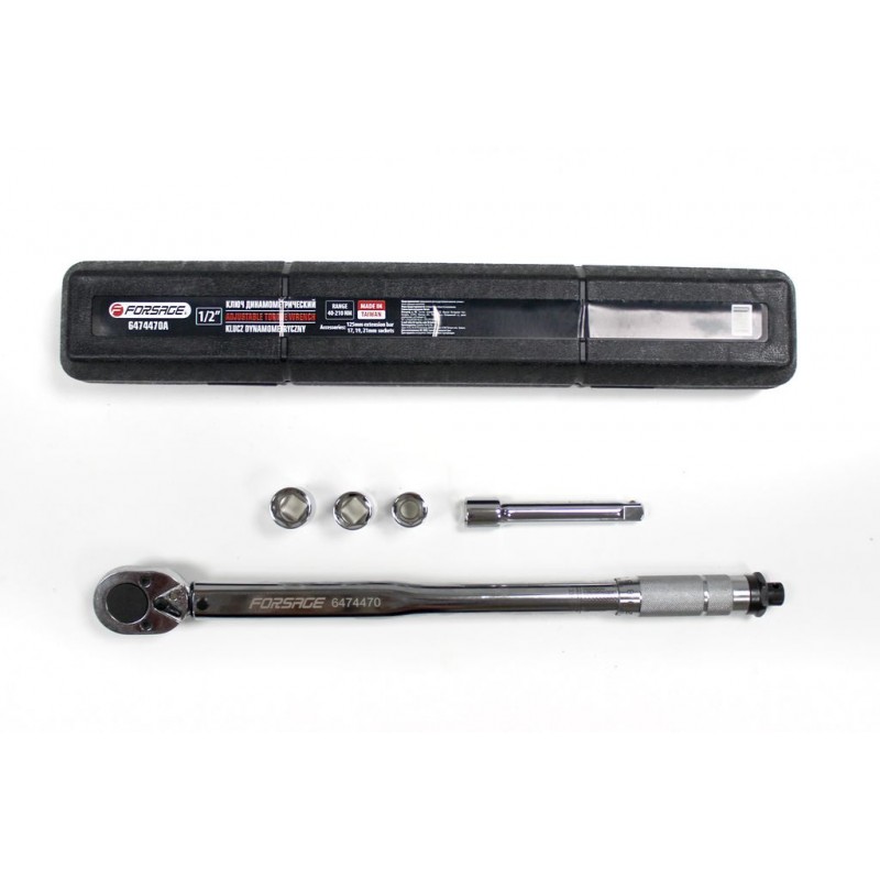 48149 F-6474470A Ключ динамометрический FORSAGE щелчкового типа в наборе 40-210Нм, 1/2'',в пл.футляре
