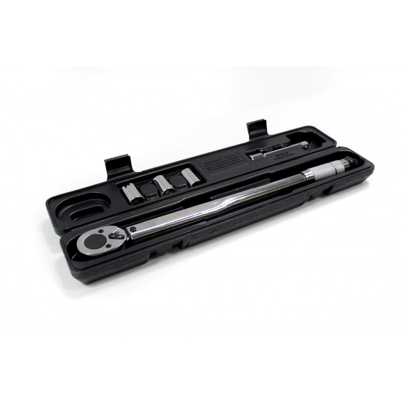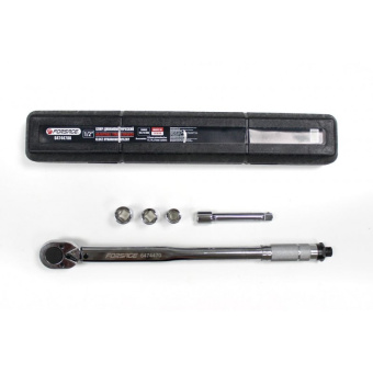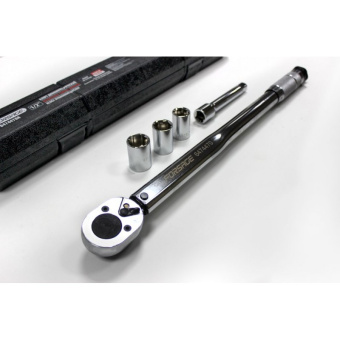Ключ динамометрический щелчкового типа в наборе с головками и удлинителем 40-210Нм, 1/2''(17,19,21мм,удлинитель 125мм)(Тайвань),в пластиковом футляре