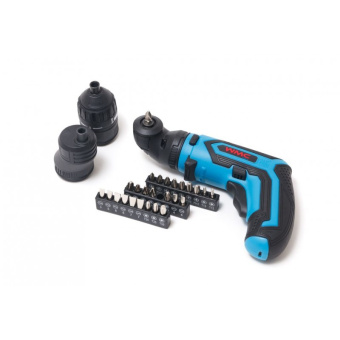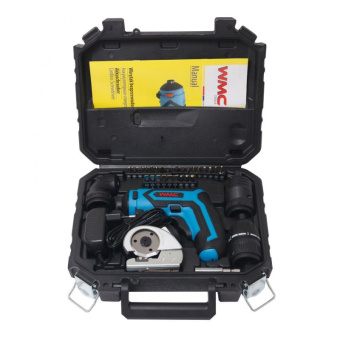 Аккумуляторный шуруповерт с набором бит и аксессуаров WMC TOOLS 36 предметов, в кейсе 48163 1036 используется для работ с крепежными элементами.