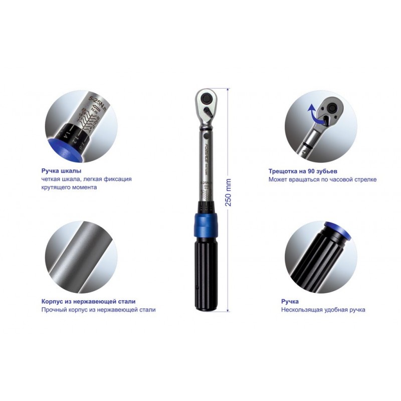 48601 F-6473295 Ключ динамометрический FORSAGE щелчкового типа с быстрой фиксацией ''Premium''5-25Нм,3/8'', в пл. футляре