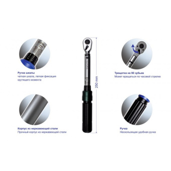 48610 RF-6473295 Ключ динамометрический ROCK FORCE щелчкового типа с быстрой фиксацией ''Premium''5-25Нм,3/8'',в пл. кейсе