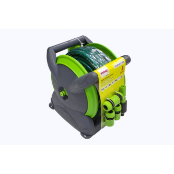 Катушка пластмассовая переносная со шлангом ПВХ 12ммх15м+пистолет распылитель и 3 быстроразъема
