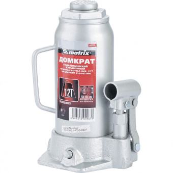 50727 Домкрат гидравлический бутылочный MATRIX, 12 т, h подъема 230–465 мм