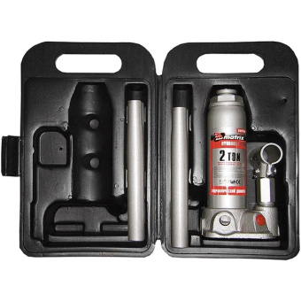 50750 Домкрат гидравлический бутылочный MATRIX, 2 т, h подъема 181–345 мм, в пласт. кейсе