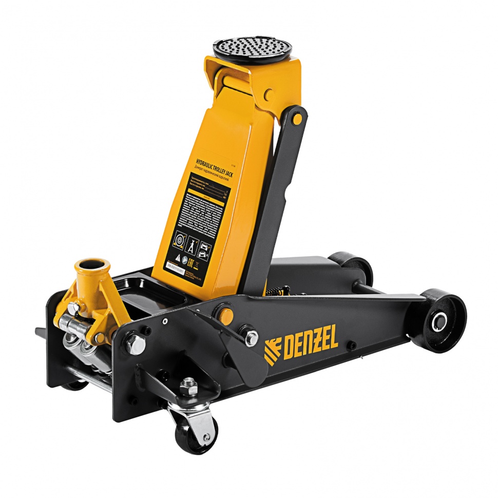51138 Домкрат гидравлический подкатной DENZEL 3т, с фиксатором, быстрый подъем, 135-480 мм, проф.