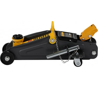 Подкатной гидравлический домкрат Denzel 51154 с фиксатором позволяет поднимать грузы весом до 2 т на высоту 330 мм. За счет низкого подхвата 130 мм используется для обслуживания автомашин со стандартным дорожным просветом.