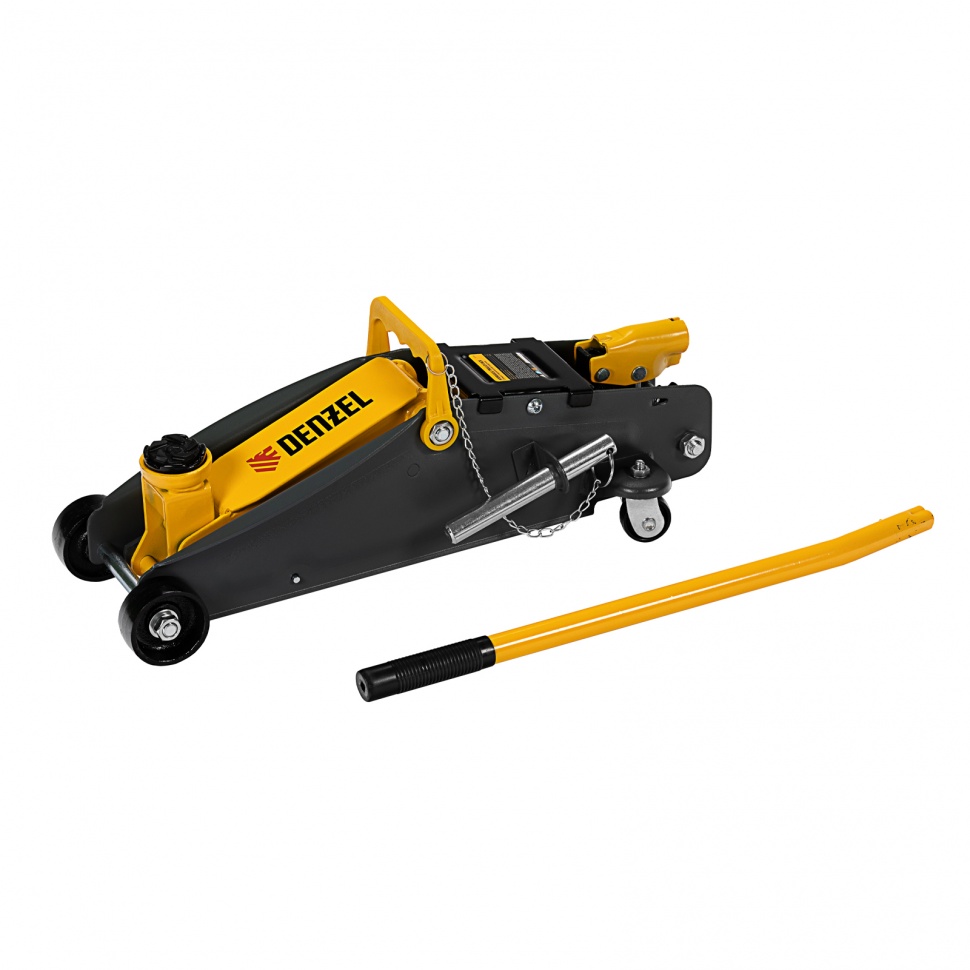 51156 Домкрат гидравлический подкатной DENZEL с фиксатором, 2,8 т, 135-385 мм, в кейсе