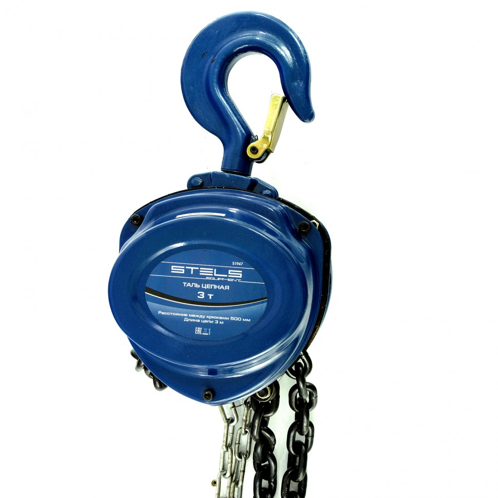 51947 Таль цепная STELS, 3 т, h подъема 3 м, расстояние между крюками 500 мм
