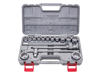 Набор шоферского инструмента из 16 предметов. Состав набора: головки сменные торцовые 6-гранные 10-32 мм, удлинитель, ключ трещоточный, ключ с присоединительным квадратом