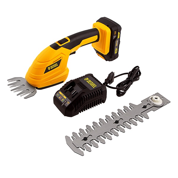 Аккумуляторные ножницы-кусторез Denzel CGS-100 18 В 59430 – практичный инструмент для ухода за живыми изгородями и кромками газона.