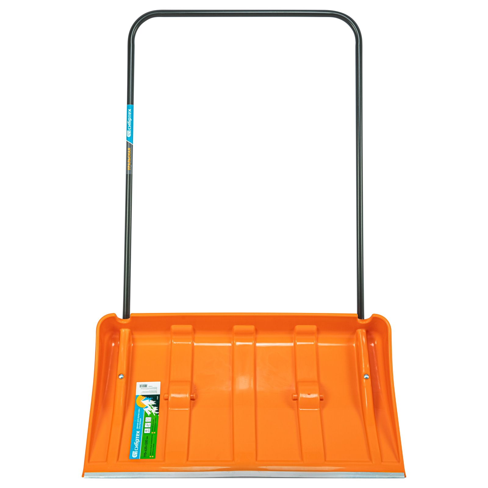 61669 Движок для уборки снега пластиковый СИБРТЕХ, 795х435х1280 мм, стальная рукоятка, усиленный