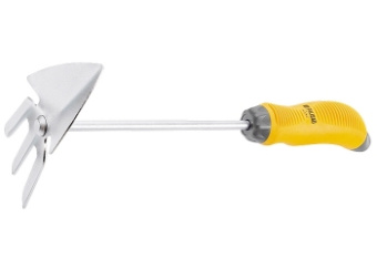 Мотыжка комбинированная с эргономичной двухкомпонентной рукояткой. Ширина рабочей части 70 мм, длина 175 мм, общая длина 325 мм. Предназначена для рыхления, аэрации почвы и прополки на небольших грядках и клумбах. Молибденовое покрытие рабочей части защищает от коррозии и налипания земли в процессе работы. Эргономичная рукоятка снижает утомляемость руки.