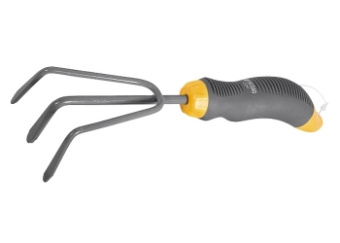 Рыхлитель 3-зубый с эргономичной двухкомпонентной рукояткой. Ширина рабочей части 80 мм, общая длина 260 мм. Предназначена для рыхления и аэрации почвы на небольших грядках и клумбах. Рабочая часть выполнена из инструментальной стали У8 и окрашена порошковой эмалью для предохранения от коррозии. Рукоятка, залитая термопластичной резиной, имеет эргономичную форму, что позволяет работать максимально комфортно. По окончании работы необходимо очистить рабочую часть от остатков грунта и садового мусора.