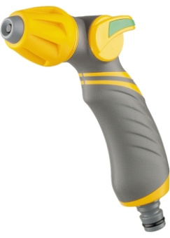 Регулируемый пистолет-распылитель со штуцерной посадкой и эргономичной двухкомпонентной рукояткой. Плавная регулировка режимов позволяет выбрать наиболее подходящий полив для любого типа посадок: «жесткую» струю, распыление типа «туман» или конусное распыление.
