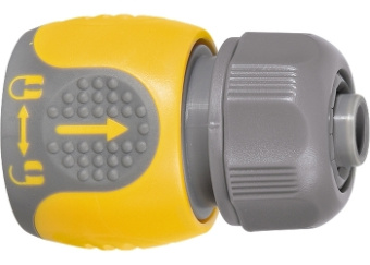 Применяется для соединения шланга 1/2” с насадкой. Материал — АБС-пластик со вставками из резины.