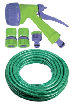 Шланг трехслойный садовый с армирующим кордом предназначен для создания системы полива. Максимально выдерживаемое давление 10 бар. В комплект также входит: 6-режимный пистолет-распылитель с режимами полива: душ, мелкий туман, плоско-вертикальная струя, плоскогоризонтальная струя, туман, жесткая струя; 2 быстросъемных соединителя; адаптер-переходник