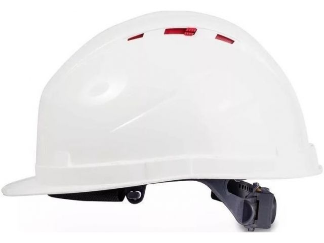 Пазы в корпусе каски для совместного ношения с защитными лицевыми щитками с креплением на каске и наушниками противошумными с креплением на каске.