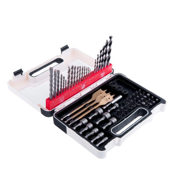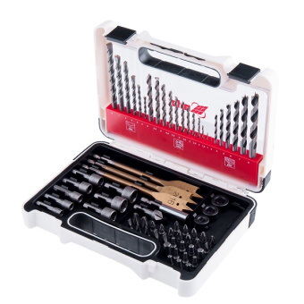В набор входит высококачественные сверла по бетону, металлу, дереву и пластику, отверточные биты и головки наиболее распространенных размеров.