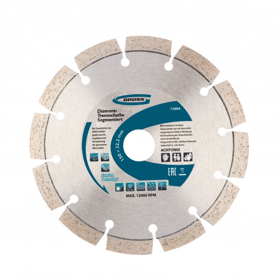73004 Диск алмазный GROSS ф150х22,2мм, лазерная приварка сегментов, сухое резание