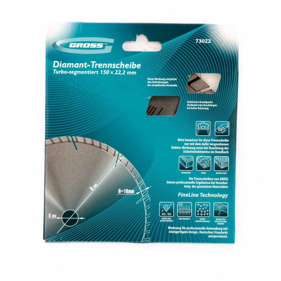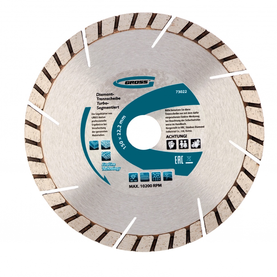 73022 Диск алмазный GROSS ф150х22,2мм, турбо-сегментный, сухое резание
