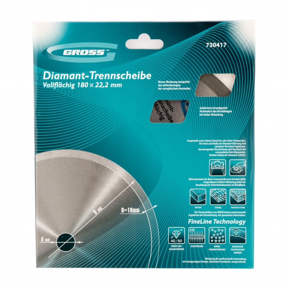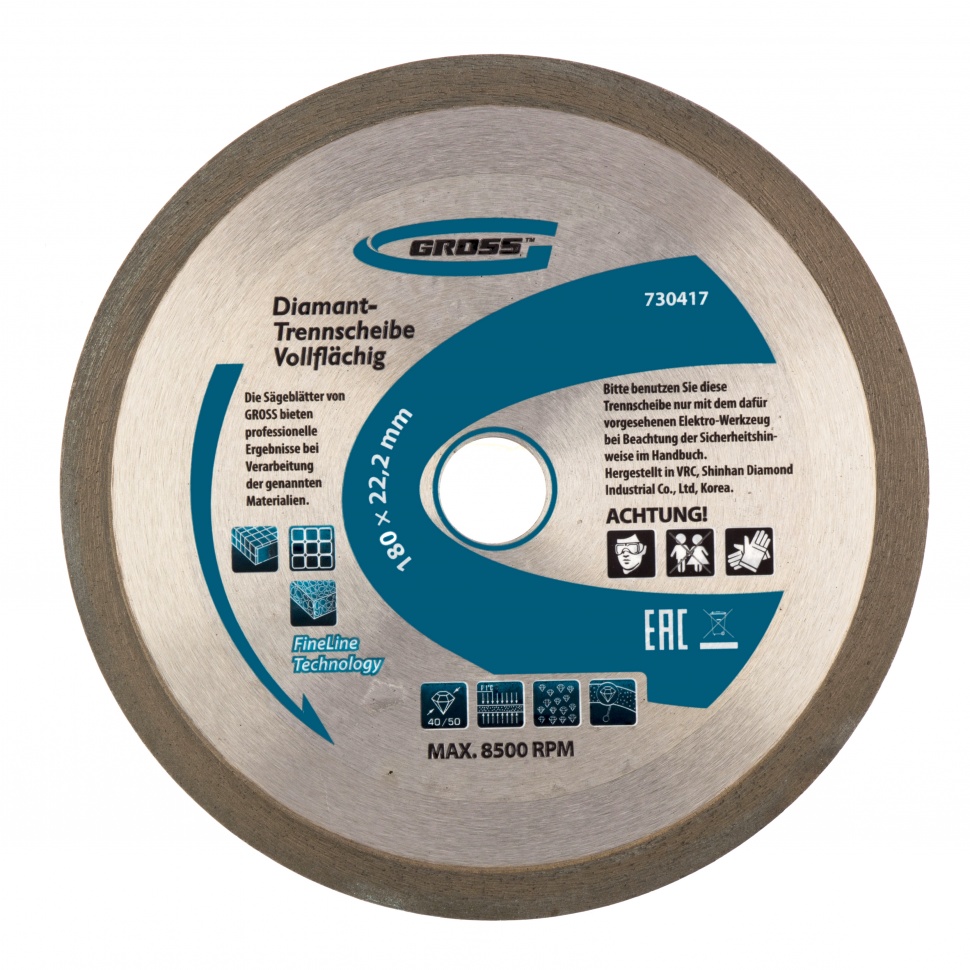 730417 Диск алмазный GROSS ф180х22,2мм, сплошной, мокрое резание