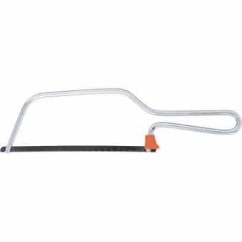 Мини-ножовка по металлу изготовлена из стальной рамы с никелированным покрытием. В ножовке используется полотно длиной 150 мм. Инструмент предназначен для ручной резки металла, пластика и т. д. при небольшом объеме работ.