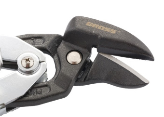 Ножницы по металлу торговой марки GROSS предназначены для проходного прямого и левого реза листового металла толщиной до 1,57 мм и нержавеющей стали толщиной до 0,94 мм. Рабочие части ножниц изготовлены из высоколегированной стали (CrMo), содержание молибдена и ванадия в ее составе придает необходимую жесткость и высокую твердость.