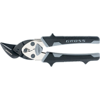 Ножницы по металлу торговой марки GROSS предназначены для точного прямого и левого реза листового металла толщиной до 1,2 мм и нержавеющей стали толщиной до 0,7 мм. Инструмент идеально подходит для работы в ограниченных пространствах. Рабочие части ножниц изготовлены из высоколегированной стали (CrMo), содержание молибдена и ванадия в ее составе придает необходимую жесткость и высокую твердость. Режущие губки проходят процесс индукционной закалки и имеют твердость 60&ndash,62 HRС. Ножницы общей длиной 185 мм оснащены эргономичными антискользящими рукоятками, оригинальная форма которых минимизирует риск травм и обеспечивает удобство при длительных работах.