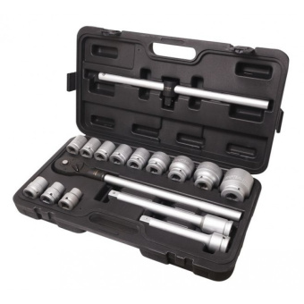 "Торцевые головки 3/4"": 17, 19, 21, 24, 27, 30, 32, 33, 36, 38, 41, 46, 50 мм; Трещотка 3/4""; Вороток Т-образный 3/4"": 450 мм; Удлинитель 3/4"": 200 мм"