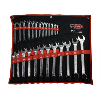 Ключи комбинированные - рожково-накидные. Размеры: 6, 7, 8, 9, 10, 11, 12, 13, 14, 15, 16, 17, 18, 19, 20, 21, 22, 23, 24, 25, 26, 27, 28, 30, 32 мм. На полотне.