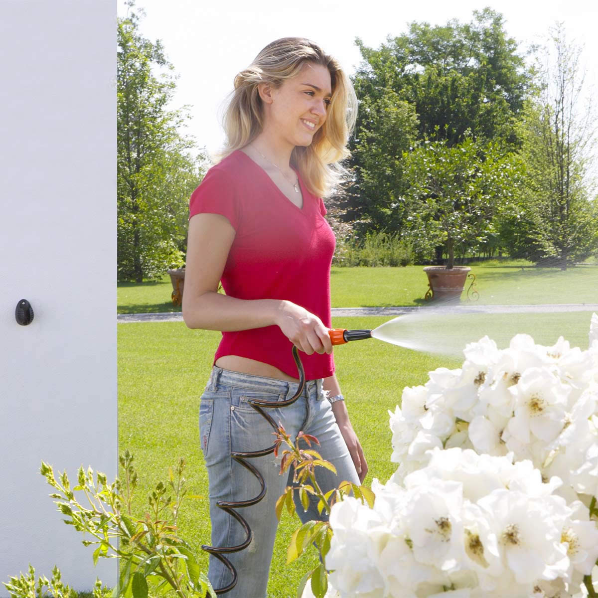 Спиральный шланг идеально подходит для использования на балконах, террасах, в небольших садах, на лодках и в кемпингах. Благодаря качеству материалов и спиралевидной памяти шланг всегда восстанавливает свою первоначальную форму после использования. В комплект входят: спиральный шланг 10 метров, резьбовое соединение крана 3/4” (20-27 мм), автоматиче