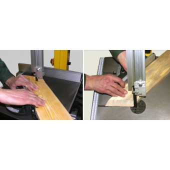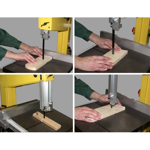 Параллельный упор, перемещаемый по столу, позволяет пилить серии деталей одного размера без разметки.