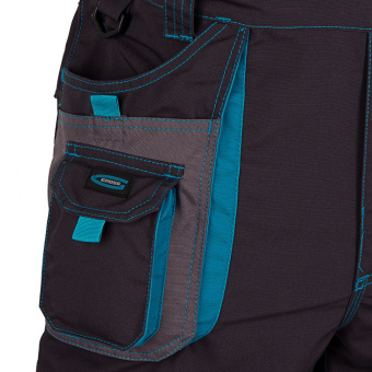 На коленной части предусмотрены карманы для амортизационных вкладышей, защищающих пользователя во время долгой работы на коленях. -