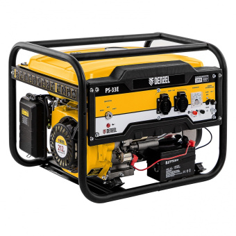Генератор бензиновый с электростартером, мощностью 3,3 кВт, напряжением 230 В, с топливным баком объемом 15 л, предназначен для автономного обеспечения бытовой техники и инструментов электрической энергией.