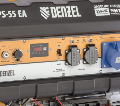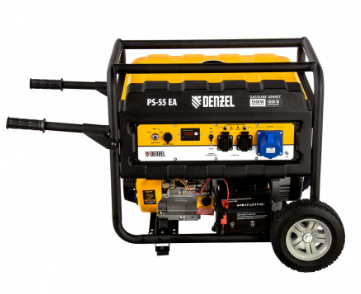 Генератор Denzel PS 55 EA выдает мощность 5.5 кВт и отлично подойдет для подключения мощных электроинструментов и бытовых приборов.