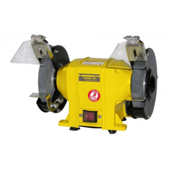 Станок оснащен мощным асинхронным двигателем. Хорошо сбалансированный вал и качественные подшипники исключают вибрацию и шум при работе. Отсутствие вибрации и резиновые опоры позволяют использовать станок без дополнительного крепления к верстаку. Безопасность при работе обеспечивают два широких защитных экрана. Для удобства в работе имеются регулируемые упоры. Станок комплектуется переходными кольцами для заточных кругов с посадочным диаметром 32 мм.