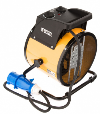 Мощная 5 кВт тепловая пушка Denzel DHC 5-400 справляется с обогревом складских, бытовых и подсобных помещений площадью до 50 м2. С ее помощью можно просушивать поверхности на строительной площадке (окрашенные стены, стяжки). Также ее можно использовать как вентилятор для проветривания комнат. Пушка работает от однофазной сети 230В, поэтому подходит для бытового применения.