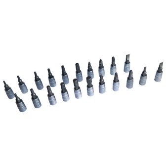 Головки-биты 1/4" - длина 32 мм.; Hex 3, 4, 5, 6, 7, 8 мм.; Torx T10, T15, T20, T25, T30, T40; SL 4, 5,5, 7 мм.; PH PH.1, PH.2, PH.3; PZ PZ.1, PZ.2, PZ.3