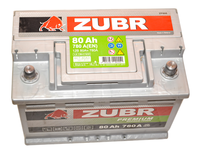 Аккумулятор 80 Ah ZUBR PREMIUM Обратная полярность пусковой ток 780А