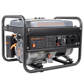 Удобный бензиновый генератор Eland LA 4500 имеет небольшой вес в 48 кг, а топливный бак имеет емкость в 15 литров. Расход составляет 1,9 литра за час работы, рекомендуемое время работы на одном баке составляет 9 часов. На корпусе имеется 2 розетки на 220 В и одна на 12 в.