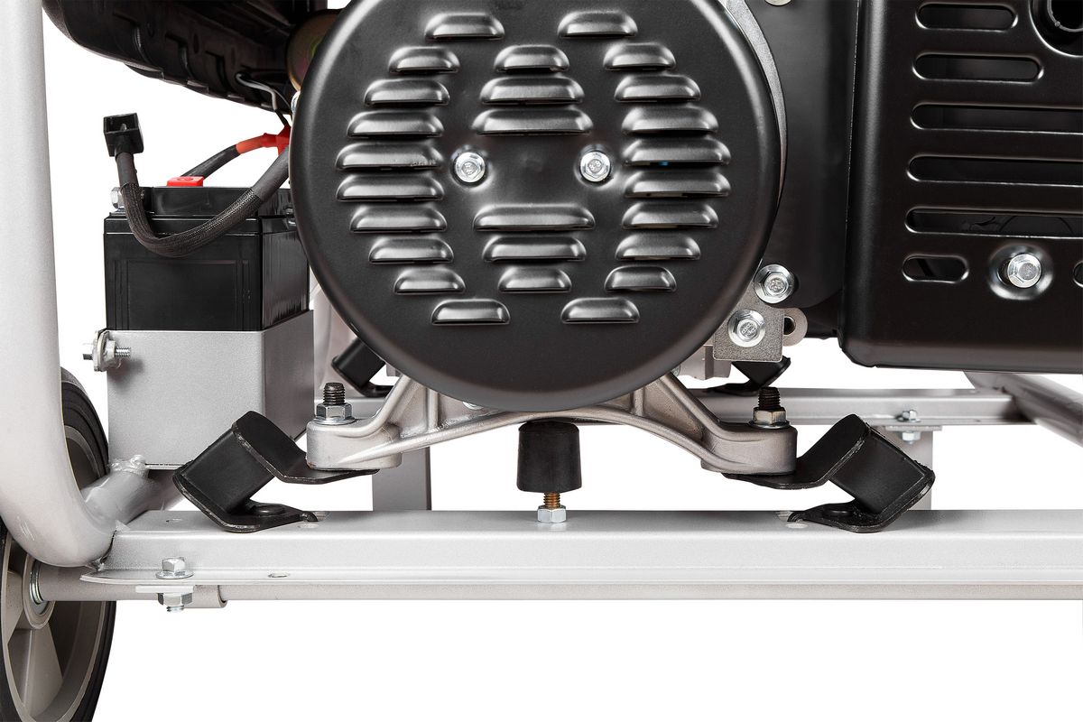 Усиленная рама защищает от повреждения бензобак и основные узлы генератора.