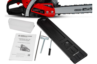 На бензопилы устанавливается пильная гарнитура от всемирно известной компании OREGON, которая узко специализируется именно на цепях, шинах и ведущих звездочках.