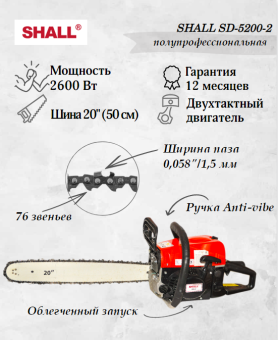 Бензопила SHALL SD-5200-2 шина 20" (2,6 кВт)