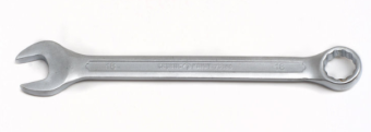 Ключ комбинированный предназначен для монтажа/демонтажа резьбовых соединений. Имеет рожковый профиль на одной стороне и двенадцатигранный накидной профиль на другой. Изготовлен из высококачественной хромованадиевой (Crv) стали методом холодного штампа. Хромоникелевое покрытие ключа улучшает антикоррозийные свойства инструмента.