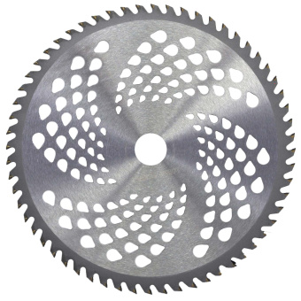 Твердосплавный диск с победитовыми напайками из высококачественной стали. Благодаря дополнительным отверстиям по всей ширине ножа, снижается нагрузка на редуктор мотокосы при работе. Применение - для кошения жёсткой травы, кустарника, молодых побегов деревьев.