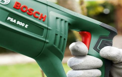 Обрезиненный корпус обеспечивает надёжное удержание столярной ножовки PSA 900 E Bosch