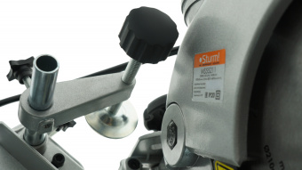 Благодаря большому поворотному столу, фиксирующемуся в любом положении, наличию удобной регулировки с прецизионными шкалами для точной настройки нужного наклона пилу можно уверенно выставить в рабочую позицию на предварительно заданные параметры косых пропилов.