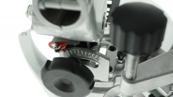 Безопасный сдвигающийся кожух и бесступенчатая регулировка глубины пропила с удобной шкалой и фиксацией без ключа облегчает работу с заготовками.