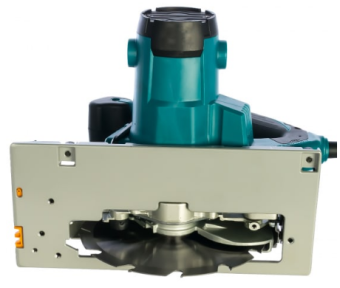 Снизу пильный диск закрывается специальным кожухом для бережного хранения без случайных механических повреждений режущей части.