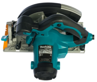 Дисковая пила Makita HS7100 имеет новый дизайн корпуса. Благодаря двигателю мощностью 1400 Вт, обеспечивается высокая производительность. Имеется стопор для фиксации наклона основания под углом в 45°. Резиновые накладки на основной и дополнительной рукоятках делают работу более комфортной. Корпус редуктора из алюминиевого сплава увеличивает рабочий